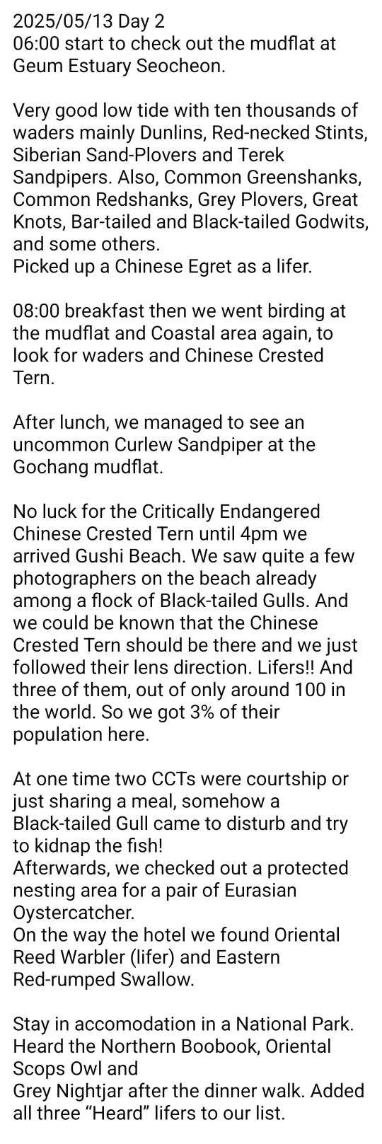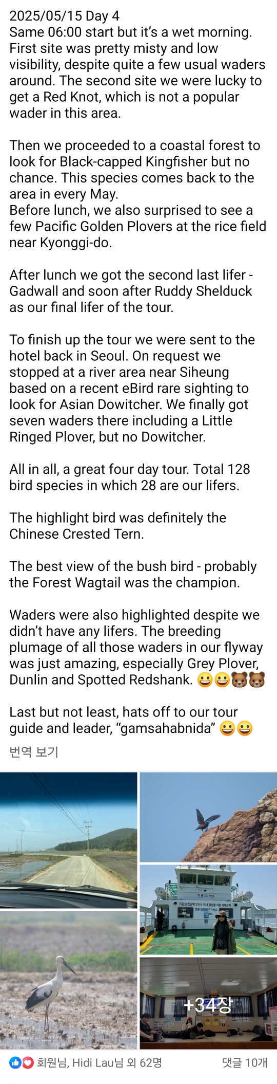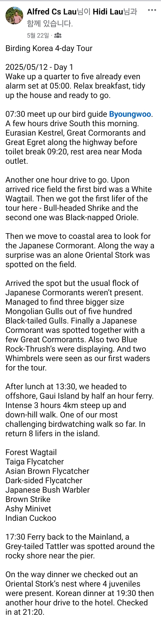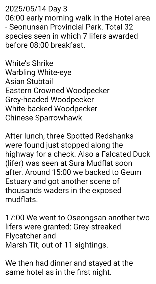 A Australian birder who went on a 4-day birding tour of Korea at the mid-May 2025 shared their birdwatching story.